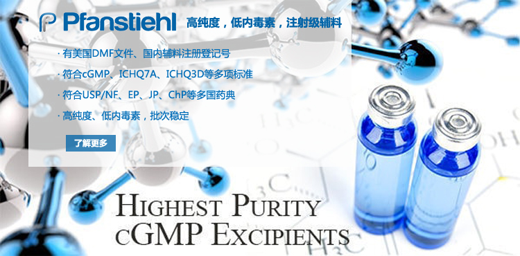“熱烈祝賀Pfanstiehl的注射級甘氨酸Glycine(G-140)喜獲CDE登記號F20250000403, 這是Pfanstiehl產品獲得的第18個CDE登記號!”甘氨酸在醫藥輔料制劑中應用廣泛,, 可作為緩沖劑,增溶劑,穩定劑等,具有諸多優勢。Pfanstiehl秉承一貫高品質理念,為滿足全球生物制藥行業對于高品質甘氨酸的需求,隆重推出的注射級甘氨酸Glycine (G-140), 具有超高純度,超低內毒素,超低金屬殘留的特點,單獨檢測29種金屬離子,并且新增DNA,RNA,DNA酶,RNA酶和脂肪酶,亞硝酸鹽等多項質量指標的檢測,符合多國藥典規定(USP, EP, BP, JPE, ChP),可用于生物治療性藥物和疫苗的生產。產品信息:· 產品名稱:Glycine, High Purity, Low Endotoxin, Low Metals, USP, EP, BP, JPE, ChP (G-140)· 中文名稱:甘氨酸· 分子式:C2H5NO2· 分子量:75.07 g / mol· CAS號:56-40-6· 產品貨號:G-140產品特點: · 超高純度,超低內毒素,超低微生物含量,超低金屬雜質殘留· 質量指標新增DNA,RNA,DNA酶,RNA酶,脂肪酶和亞硝酸鹽檢測· 符合多國藥典:USP, EP, BP, JPE, ChP· 符合ICH Q3D標準· 符合GMP標準· 已獲DMF和CDE登記號 產品應用:· 緩沖劑· 穩定劑· 增溶劑如果您對Pfanstiehl注射級別Glycine G-140感興趣,歡迎聯系Pfanstiehl 中國區代理商北京西美杰科技有限公司獲得如下詳細的產品概況說明文件和測試樣品。Pfanstiehl Inc.最新產品系列如下,歡迎聯系北京西美杰科技有限公司獲取100g裝免費樣品。北京西美杰科技有限公司為Pfanstiehl中國代理,為客戶提供完善的技術支持與售后服務。歡迎撥打西美杰客服電話400-050-4006或者登陸網站www_xmjsci_com.178da.com了解更多信息。 更多>